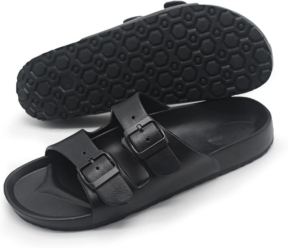BEMGNAR Men’s Lightweight Comfort Slides Double Buckle Slip Features
